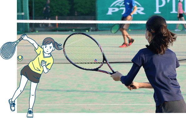 プレイヤーズクラスは、中高生対象のクラスです。ラケットを初めて握るお子さまから、トーナメント上位を目指す選手まで、PTR(Professional Tennis Registry)の研修を受けた、経験豊かなコーチが指導いたします。
